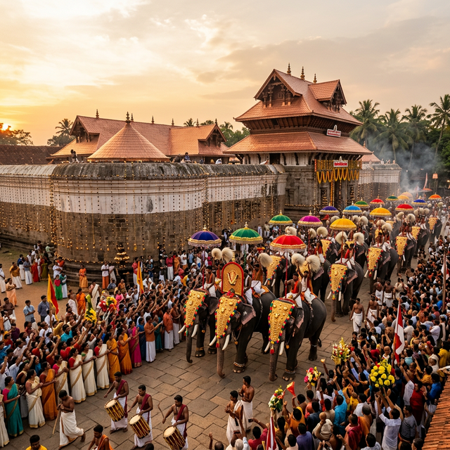 One of the oldest Shiva temples in Kerala, located at the heart of Thrissur. The temple is famous for the annual Thrissur Pooram festival featuring magnificent elephant processions.